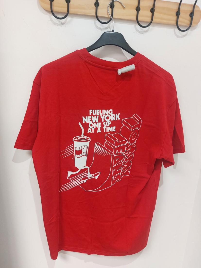 TEE-SHIRT LOGO DEVANT ET DOS TOMMY JEANS ROUGE: M